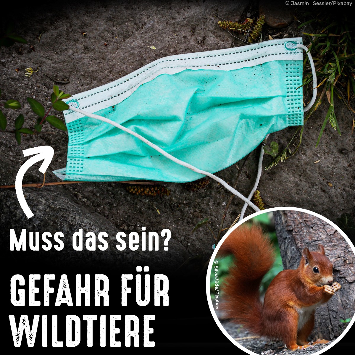 Leider sieht man immer häufiger achtlos weggeworfene Masken und Latexhandschuhe - sie liegen auf Wegen, im Gras oder hängen in Büschen und Bäumen im Wald. Sogar in Bächen und Flüssen schwimmen sie. Die Unachtsamkeit vieler Menschen schadet leider einmal mehr den Tieren und unserer Umwelt. Kleinere Wildtiere wie Eichhörnchen oder Vögel, aber auch Fische können sich in den Gummibändern der Masken und in den Handschuhen verfangen oder sich strangulieren. Außerdem bestehen die Masken größtenteils aus nicht recycelbarem Plastik und Teile davon können in die Mägen der Tiere gelangen. Es konnte sogar bereits beobachtet werden, dass Masken als Nistmaterial zum Einsatz kommen - eine Gefahr für die heranwachsenden Küken.