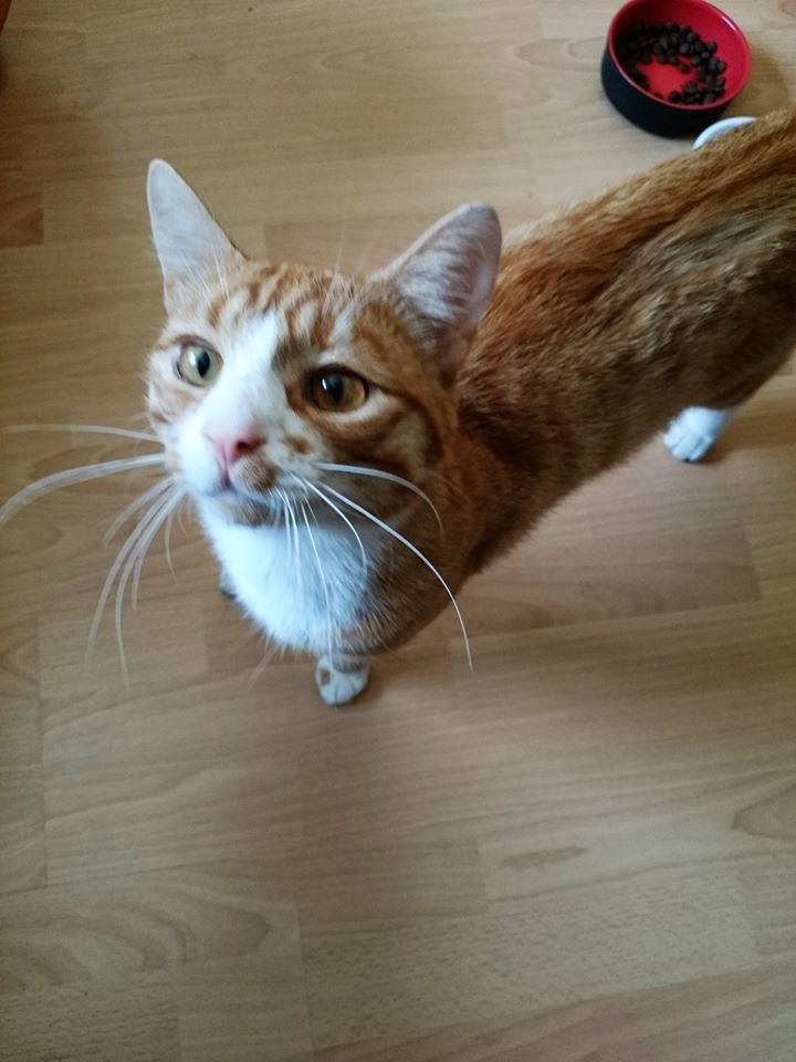 Fridolin, unser liebenswerter Tollpatsch sucht ein Zuhause! Er ist etwa 2,5 Jahre alt, kastriert, gechipt und durchgecheckt. Als rot/weißer Kater mit weißen Füßen ist er wirklich sehr hübsch. Er ist lieb und verschmust. Nach einer Eingewöhnungszeit würde er sich bestimmt über Freigang freuen. Außerdem knabbert er gerne liebevoll an Fingern und Händen und ist recht mitteilungsbedürftig - er plappert sehr viel. Manchmal sind sogar richtige "Gespräche" möglich. Es liegt mir sehr am Herzen für ihn einen schönen Platz zu finden, er hat es verdient. Abgegeben wird er mit Schutzvertrag und gegen eine Schutzgebühr. Anfragen richten sie bitte über das TSV Handy 0160-92907763 oder über