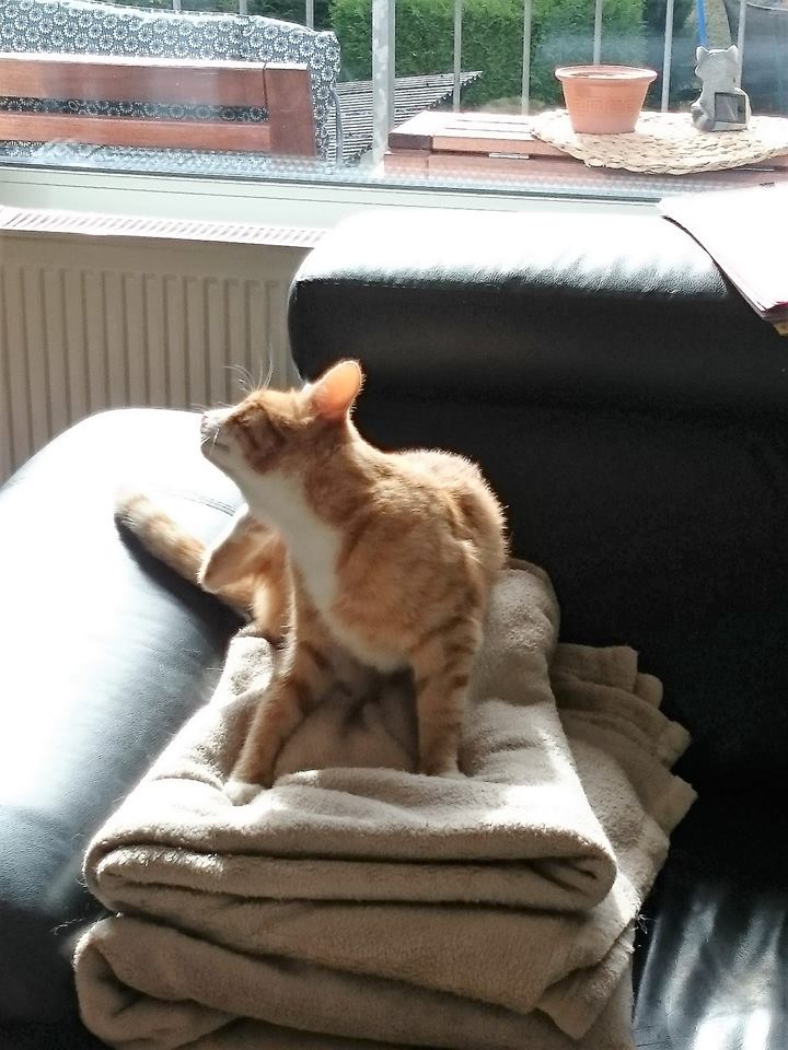 Tommy bekommt natürlich seine Sachen mit, sein Kissen und seinen Lieblingsteppich, Katzenklo, Transportkorb und SureFeed Futterautomat.