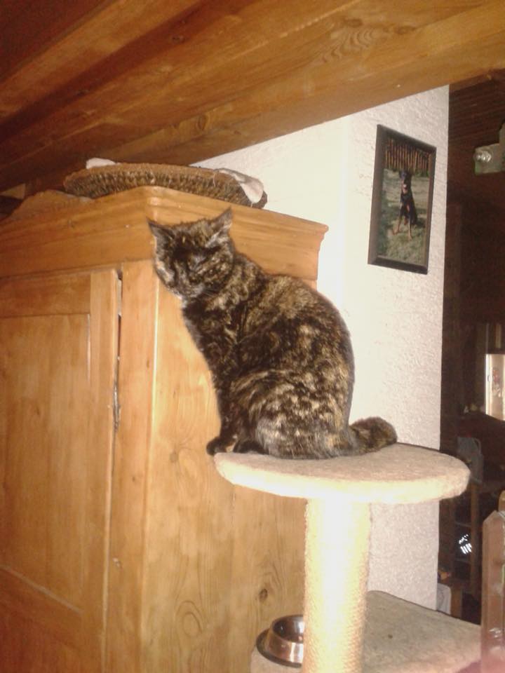 Mia ist eine kastrierte EKH Katze und befindet sich seit Mai 2013 bei der aktuellen Besitzerin, das Geburtsdatum im Impfpass ist auf den 01.2012 ausgestellt. Sie ist dreifarbig / schildpatt in Braun/beige/kupfer. Sie ist gechippt und eine Freigängerin. Der Grund der Abgabe liegt darin das Mia seit einem halben Jahr ungefähr nicht mehr mit den Hunden auskommt, was vorher kein Problem war. Mia ist eine Schmusekatze wie Sie im Buche steht, liegt gerne auf der Person, die Sie streichelt, hat aber auch ganz gerne ein Nest für sich allein. Sie spielt gerne und ist eine unkomplizierte Katze, frisst an Trocken- und Nassfutter alles was man ihr hinstellt. Bei Interesse rufen Sie uns an unter 0160/92907763.